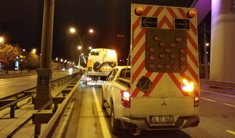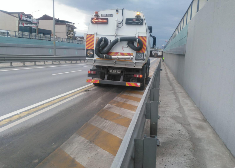 D-100 ve D-130 karayollarında gündüz saatlerinde trafik yoğunluğu olduğundan dolayı Kocaeli Büyükşehir Belediyesi ekipleri, yolun sol kenarında kalan kısımlarını gece temizliyor. Gece ve gündüz yapılan temizlik çalışmalarında güvenlik önlemi kapsamında süpürge aracına, üzerinde uyarı ışıkları bulunan güvenlik aracı eşlik ediyor. Yıl boyunca gerçekleştirilen temizlik çalışması ile yollar temiz tutulurken vatandaşlarında memnuniyeti kazanılıyor.