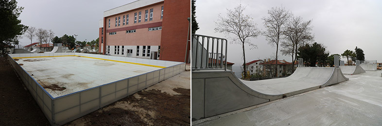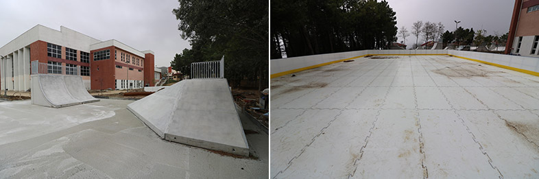 Kocaeli’de gençleri spor ve sanatın çeşitli dallarıyla buluşturan Büyükşehir yakın zamanda Karamürselli gençleri sentetik sentetik buz pateni ve skate park (kaykay pisti) sporuyla tanıştıracak. Buradaki çalışmaları yürüten Park ve Bahçeler Dairesi Başkanlığı ekipleri, sentetik buz pistinde dış bord sistemini tamamlarken, iç puzzle zemin sistemi imalatı çalışmalarına da devam ediyor. Böylelikle Kocaeli’nin ilk sentetik buz pisti son şeklini alırken, kaykay pistinin yapımı ise son aşamaya geldi. Bu doğrultuda pistin üst betonu atıldıktan sonra grafiti çalışmasına başlanacak. Sentetik buz pisti ve skate parkın tamamlanmasıyla Karamürsel’de gençler, iklim şartları gözetmeksizin paten sporunun keyfini doyasıya yaşayacak.