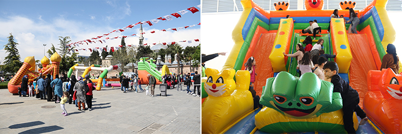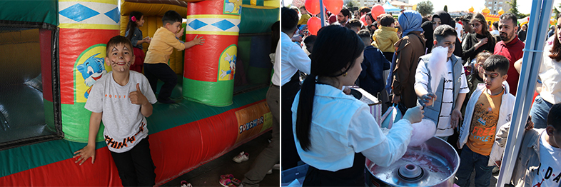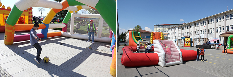3 gün boyunca sürecek etkinliklerde çocuklara 22 Bin 500 adet top, 51 Biner adet patlamış mısır, pamuk şeker, balon, macun ve su dağıtımı yapıldı.