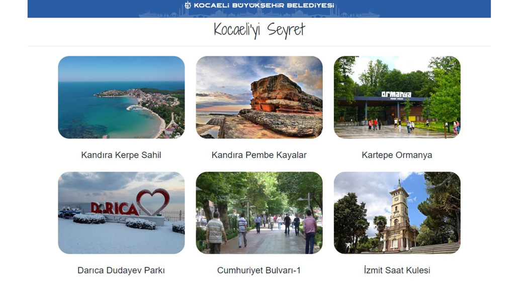Büyükşehir, şehir kameralarıyla Kocaeli’nin turistik mekânlarının anlık olarak izlenebilmesine imkan sağlıyor. Sistem mobil olarak cep telefonlarından da izlenebiliyor