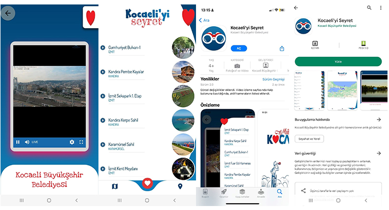 Şehir kameralarını her geçen gün yaygınlaştıran Kocaeli Büyükşehir Belediyesi, ilçelerde bulunan turistik mekânları ve merkezi yerlerini vatandaşların anlık olarak izleyebilmesine imkan sağlıyor. 32 kamera ile hizmet veren Büyükşehir Belediyesi, hem vatandaşların gitmek istedikleri yerler hakkında görüntülü bilgi verirken hem de anlık erişim imkânı sunuyor. Şehir kameralarına Kocaeli Büyükşehir Belediyesi’nin www.kocaeliyiseyret.com adresine tıklayarak ulaşmak mümkün. Kocaeli’yi seyret kameralarına mobil uygulamayla daha kolay erişim ise artık cebinizde. Kocaeli’yi seyret uygulaması App store ve Play store ile indirilebiliyor.