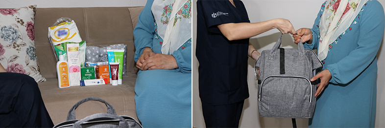 Talep eden tüm annelere eğitimin yanında Hoş Geldin Bebek çantası da veriliyor. Su geçirmez dayanıklı kumaştan üretilen rahat ve çok fonksiyonlu sırt çantasının içinde hem bebeğin hem de annenin faydalanabileceği, tıbbi aromatik bitkilerin doğal ve sağlıklı ürünlere dönüştüğü bakım ve temizlik ürünleri bulunuyor. 18 farklı bitkinin kullanıldığı, ürün içeriğinin Kocaeli Büyükşehir Belediyesi tarafından ortaya çıkarıldığı ürünlerde; pişik kremi, bebek şampuanı, bebek bakımı, krem, bebek bezi, ıslak havlu, bebek pudrası, sabun tozu, gülsuyu, ateş ölçer, emzirme yastığı, anne için papatya ve rezene çayı yer alıyor.
