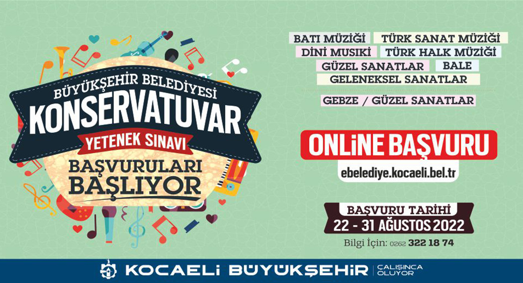 Konservatuvar Sınavlarının başvuruları online yapılacak. Başvurular, Kocaeli Büyükşehir Belediyesi’nin ebelediye.kocaeli.bel.tr adresi üzerinden gerçekleştirilecek.