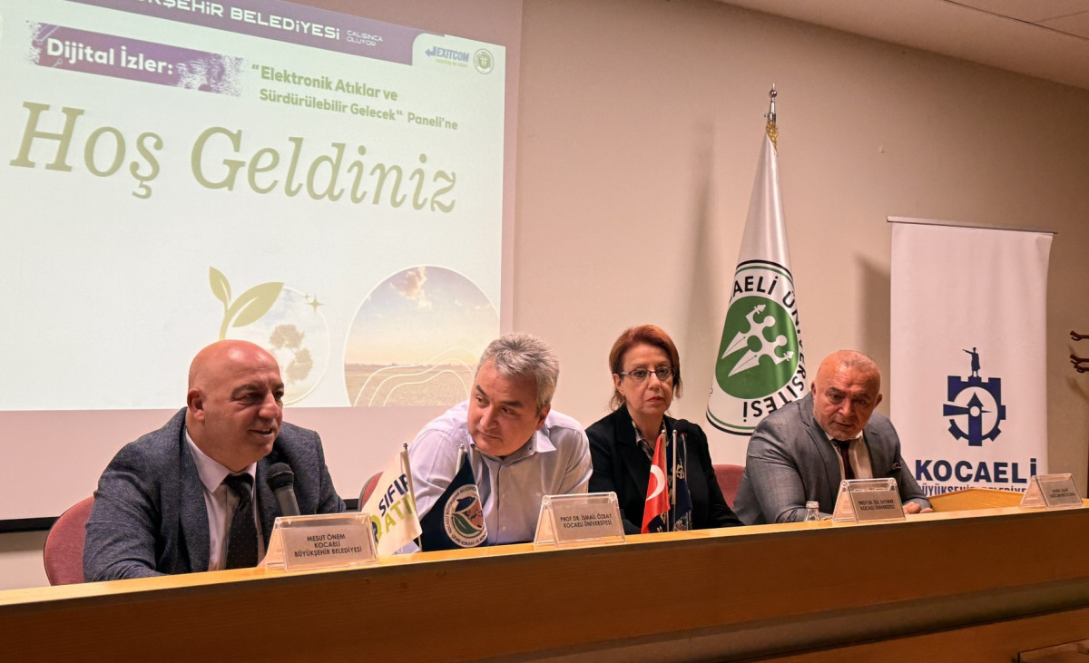Kocaeli Büyükşehir Belediyesi ve Kocaeli Üniversitesi işbirliği ile Uluslararası Elektronik Atık Günü kapsamında “Dijital İzler: Elektronik Atık ve Sürdürülebilir Gelecek” konulu panel düzenlendi. Panel kapsamında atıkların yeniden kullanımı, onarımı ve geri kazanımı kavramları ele alındı. Panelde yaptığı konuşmada kullandığımız her cihazın bir gün atık olacağına ve bu atıkların çevreyi tehdit edebileceğine dikkat çeken Büyükşehir Belediyesi Çevre Koruma ve Kontrol Dairesi Başkanı Mesut Önem, ‘’Her geri dönüşüm kutusunu gördüğünüzde, aklınıza şu gelmeli; Benim seçimim, geleceğimi şekillendiriyor. Unutmayın, gelecek sizin ellerinizde’’ dedi.