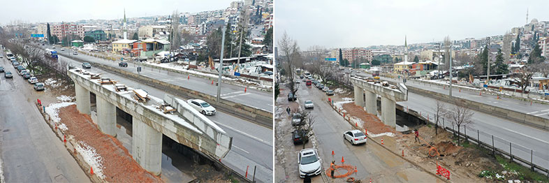 Kuruçeşme Tramvay Projesi kapsamında yapılan tramvay üstgeçit köprüsünün ayakları hızla inşa ediliyor