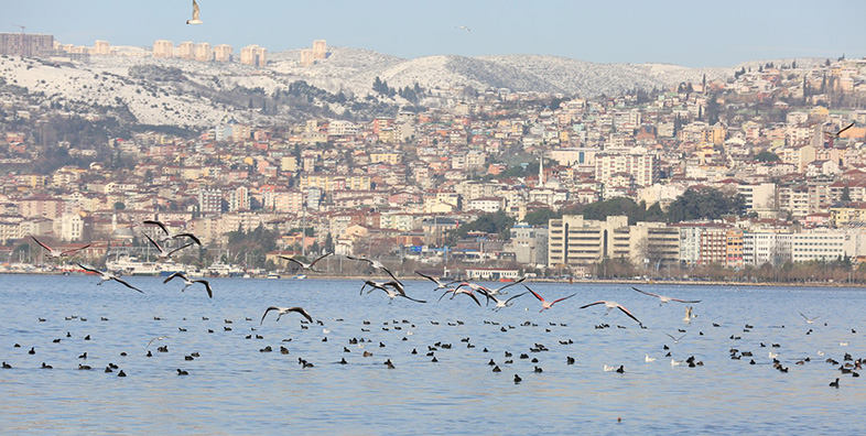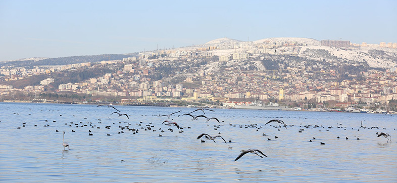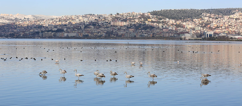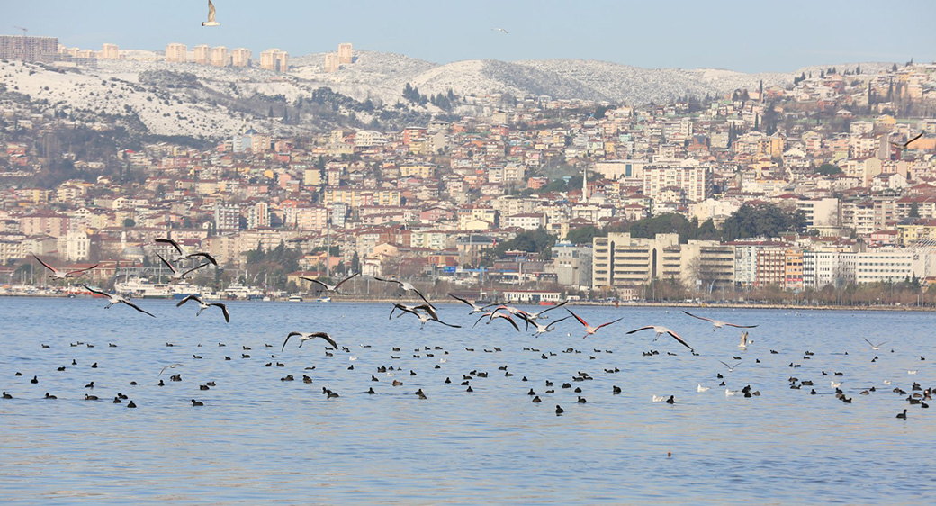 Sıcak bölgelere göç eden su kuşları dinlenmek ve beslenmek için İzmit Körfezi’nin doğu sahilini tercih etmeye başladı. Binlerce su kuşu, Kocaeli Büyükşehir Belediyesi tarafından inşa edilen arıtma tesisleri, denetim ve temizlik çalışmaları sayesinde sahillerde hem dinleniyor hem de beslenme imkânı buluyor. Renkleri ve görünümleriyle dikkat çeken flamingoların uğrak yeri haline gelen İzmit Körfezi, meraklı vatandaşların da uğrak noktası haline geldi.