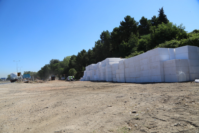 Uygulamanın ülkemizde sadece birkaç yerde olduğu ancak bu çaptaki bir büyüklükte, yani 100 bin metreküplük bir dolgunun ilk kez Büyükşehir Belediyesi’nin dev projesinde uygulandığı belirtildi. Geofoam blok yol dolgu sisteminde; projede belirtilen yoğunluklara göre imal edilen strafor EPS köpükler, yol kenarına uygun şekilde dizilecek. Ardından da üzeri asfaltla kaplanacak. Böylece yol genişletilecek.