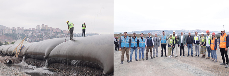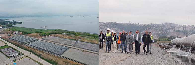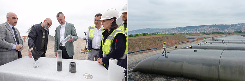 Kocaeli Büyükşehir Belediye Başkanı Tahir Büyükakın, İzmit Dip Çamuru Temizliği Projesini yerinde inceledi. Projeyle ilgili bilgi veren Başkan Büyükakın, Marmara Denizi’nin ölmemesi için birçok çalışmanın aynı anda yürütüldüğünü söyledi. ‘’Biz yıllar içinde gerek nehirler aracılığıyla, gerek farklı yollarla denize ulaşan ve biriken çamuru denizden alma işlemi yapıyoruz’’ diyen Başkan Büyükakın, sözlerine şöyle devam etti; ‘’TÜBİTAK ile yıllardır bir çalışma yürütüyoruz. TÜBİTAK, 2017’nin sonu itibariyle bir çalışma başlattı ve denizin içinde yaklaşık 8 milyon ton çamurun denizden çıkartılması gerektiğini bize söyledi. İstanbul Üniversitesi’ndeki ilgili uzmanlar da çalışmalara destek verdi. Burada denizde biriken çamur çekiliyor. Çekilen çamur membran tüplerin içine sulu bir şekilde pompalanıyor. Orada içine ilave edilen katkı maddelerle çamur çökertilerek tüplerin içinde hapsediliyor. Yani çamuru bertaraf ediyoruz. Sonra temizlenen suyu denize geri veriyoruz.”