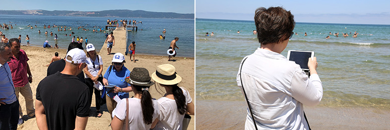 Denetimlerin her yıl yapılan rutin denetim olduğunu ifade eden Mavi Bayrak Programı Ulusal Koordinatörü Almıla Kından Cebbari; “Mavi bayrağın, plajlar için 33 kriteri var. Bu kriterlerin gerçekte yerine getirilip getirilmediğini, plajların en yoğun dönemlerinde yerinde kontrol ediyoruz. Denetimlerde 4 ana başlığımız var. İlki can güvenliği ve hizmetler. İkincisi çevre yönetimi. Üçüncüsü engelliler için olan olanaklar ve hepsinden önemlisi çevre eğitimi ve bilinçlendirme ile ilgili çalışmaları kontrol ediyoruz” ifadesini kullandı.