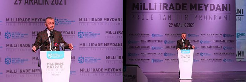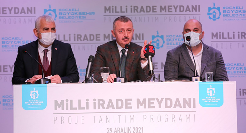 Kocaeli Milli İrade Meydanı Projesi, beton sarılı bir proje olmayacak. İnsanların nefes alacağı bir alan olacak. Etrafı betonla değil, ağaçlarla çevrili olacak. Her mevsim koşullarında kullanılması için alanın çatısında bir tente yer alacak. Çok kapsamlı bir kütüphane alanı kurulacak. Projede 7’den 70’e herkes kendisine ait bir şey bulacak.