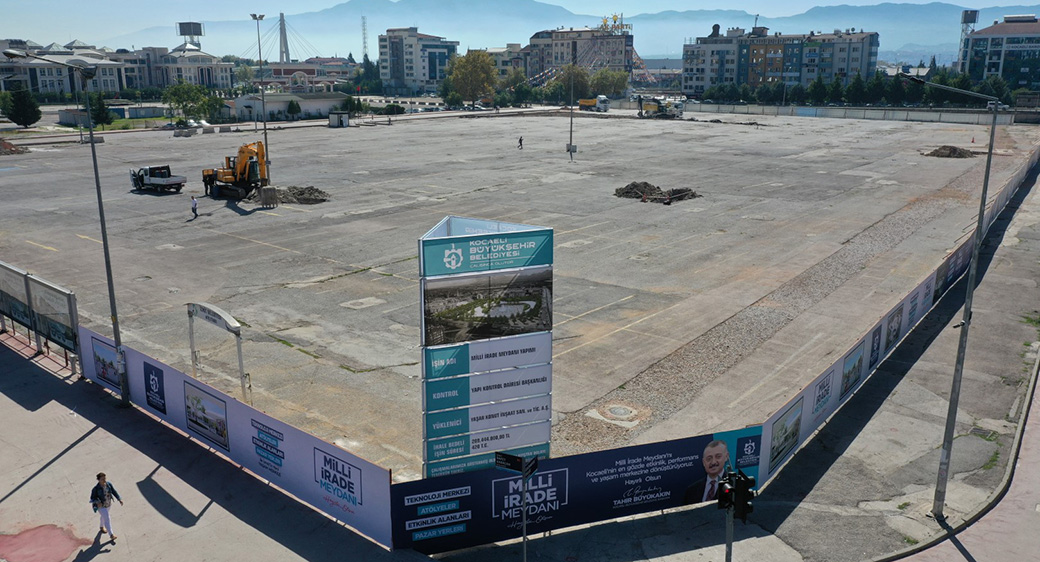 Kocaeli Milli İrade Meydanı’nı “İzmit meydana çıkacak” sloganıyla dünya meydanlarıyla boy ölçüşecek bir projeyle kent meydanına dönüştürmek için sahada kazı çalışmalarına başlandı. İlgili firmaya yer teslimi yapan Kocaeli Büyükşehir Belediyesi ekipleri, meydanın etrafını bariyerlerle kapattı. Proje çalışmaları dahilinde hafriyat kazısına başlandı.