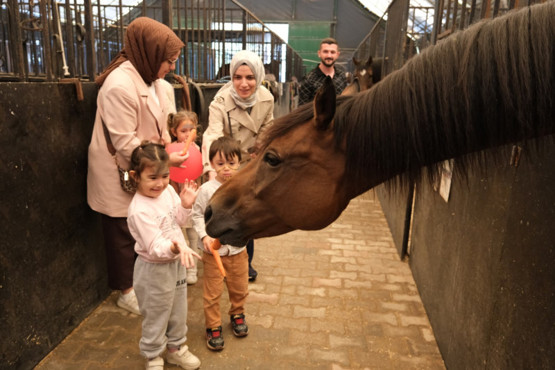 Kocaeli Büyükşehir Belediyesi, çocuklara hayvan sevgisini aşılamak ve hayvan haklarına yönelik farkındalık oluşturmak amacıyla 4 Ekim Dünya Hayvanları Koruma Günü’nde çocukları atlarla buluşturdu. Çocuklar, etkinliğe öğretmenleriyle birlikte geldi. İlk olarak görevlilerden atların yaşamı, bakımı ve ihtiyaçları hakkında bilgi alan öğrenciler daha sonra ahırlara geçti. Burada yanlarında getirdikleri havuçları atlara veren minik öğrenciler, atları severek onlarla fotoğraf çektirdi.