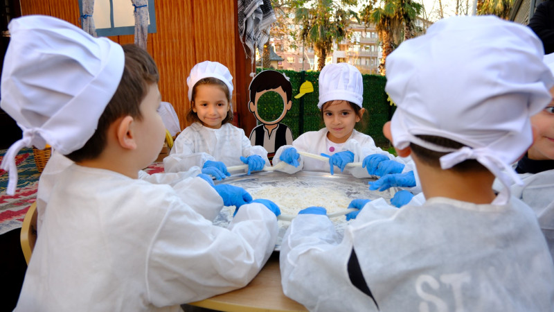Ege yöresine özgü taş ile zeytin kıran minikler, geleneksel yöntemleri uygulamalı olarak görme imkânı yakaladı. Portakal sıkan çocuklar taze meyve suyunun doğal ve sağlıklı yönünü keşfetti. Etkinlikler yalnızca mutfakla sınırlı kalmadı. Minikler örgü örerek el emeğinin değerini öğrendi. Çocuklar, “Fidayda” şarkısı eşliğinde sergiledikleri gösteriyle etkinliğe renk kattı. Müzik ve ritimle uyum içinde sahne alan miniklerin gösterisi büyük beğeni topladı.