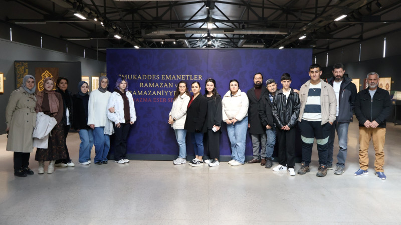 Mukaddes emanetlerin yanı sıra SEKA İhtisas Merkezi’nde ziyaretçilere sunulan “Ramazan ve Ramazaniyyeler Yazma Eserler Sergisi” öğrenciler tarafından ilgiyle gezilen bir başka alan oldu. Çeşitli koleksiyonlardan seçilen 32 eserin yer aldığı bölümde öğrenciler, Osmanlı hat sanatının önemli isimlerine ait eserleri inceleyerek kültürel miras hakkında bilgi edindi.