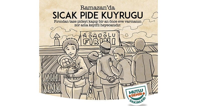 Ramazanın her günü bir anlatımın verileceği çizgilerde ayrıca, Türk Milletinin yardımlaşma sırasındaki asaletini gösteren Sadaka Taşları ve esnafın tuttuğu zimen (borç)defterlerinin gönlü zengin kişiler tarafından ödenmesini anlatan geleneklerimiz hatırlatılacak. Ramazanın olmazsa olmazı pide ve pide kuyrukları da yine çizgilerle hatıralarımızı tazeleyecek.