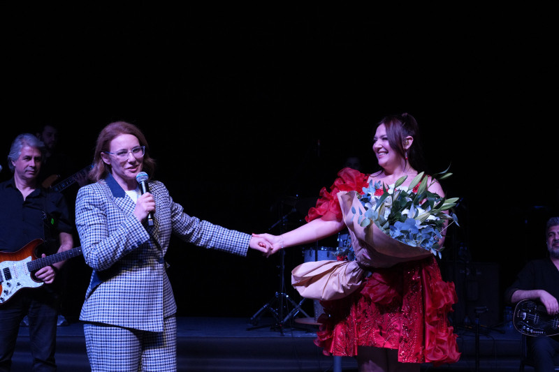 Konser arasında sahneye gelen Başkan Vekili Berna Abiş de sanatçıya çiçek vererek teşekkür etti. Günün konukları olan öğretmenlere hitap eden Berna Abiş, “Sevgili öğretmenlerimiz, kendisi de bir akademisyen olan Başkanımızın sizlere selam ve sevgilerini getirdim. Ülkemizin en kutsal mesleğini yapan tüm öğretmenlerimizi kutluyorum hoş geldiniz” dedi.