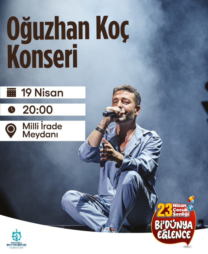 Büyükşehir Belediyesi, pek çok özel etkinliğin yanı sıra özel iki muhteşem konserle de 23 Nisan’ı kutlayacak. Bu konserlerin ilkinde Oğuzhan Koç, 19 Nisan Cumartesi günü (yarın) saat 20.00’de İzmit Milli İrade Meydanı’nda sahne alacak. Oğuzhan Koç konseri ile eğlenceli vakit geçirecek olan çocuklar, etkinlik alanında bulunan çeşitli aktivitelerle de doyasıya eğlenecek.