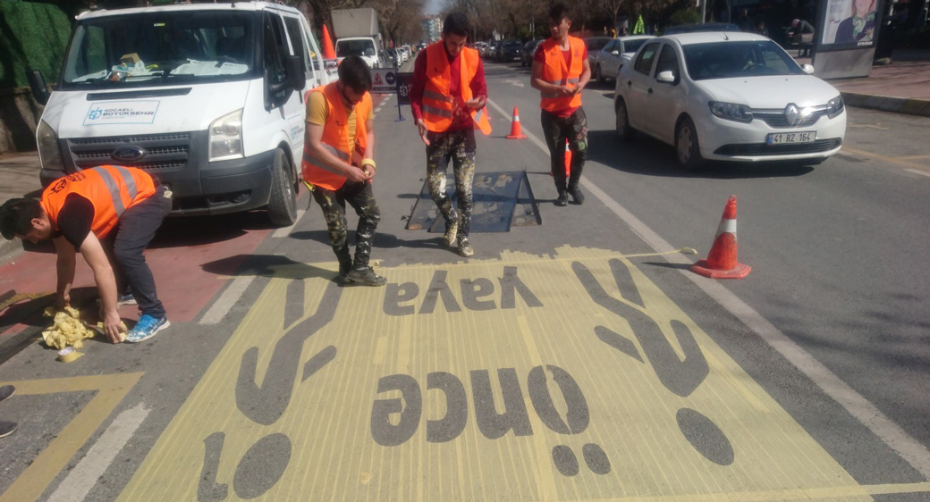 “ÖNCE YAYA” ZEMİN İŞARETLERİ HAZIRLANDI
