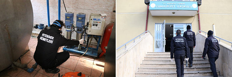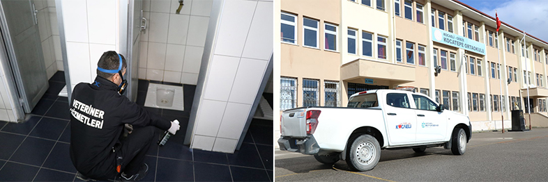 Kocaeli Büyükşehir Belediyesi vektör mücadelesi hizmetleri kapsamında her eğitim-öğretim döneminde olduğu gibi 2023–2024 eğitim öğretim yılı yarıyıl tatili sürecinde ilimizdeki tüm okullarda haşere ve kemirgenlere karşı ilaçlama yaptı.İlimizde bulunan 532 okulda çocuklarımızın sağlığının dikkate alındığı çalışmalarda veteriner hizmetleri ekipleri özellikle çocukların ortak kullanım alanları olan sınıflar, tuvaletler, mutfak, merdiven tırabzanlar, okulun bodrum katlarına kadar tüm köşeleri ilaçladı.