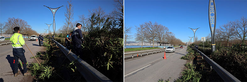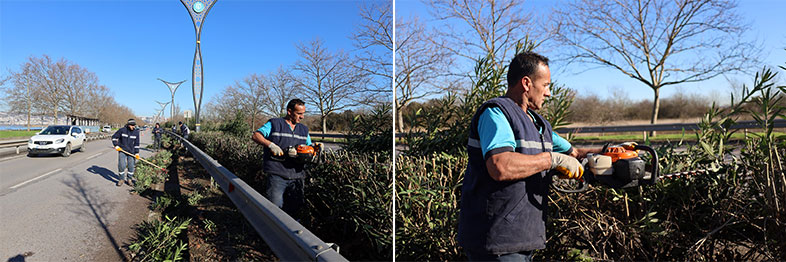 Kocaeli Büyükşehir Belediyesi, il genelinde birçok bölgede budama ve çevre temizliği işlemi yapmaya devam ediyor. Mevsimine göre ağaçların ve çevrenin bakım ve temizlik işlemini gerçekleştiren Park ve Bahçeler Dairesi Başkanlığı ekipleri, bu kapsamda Ömer Türkçakal Bulvarı’nda da çalışma başlattı. Ekipler, orta refüjde bulunan zakkumların form budamaları, bakımlarını ve yeniden çimlendirme işlemini gerçekleştiriyor. Ekiplerin bir kısmı araç yoluna engel teşkil eden zakkum ağaçlarını budarken bir kısmı da temizliğini yapıyor. Büyükşehir böylelikle bitkileri fizyolojik dengede tutarken, araçların da görüş açısını iyileştiriyor.