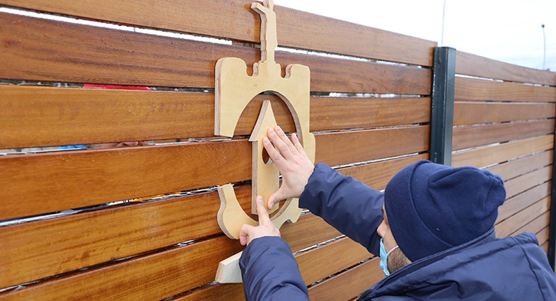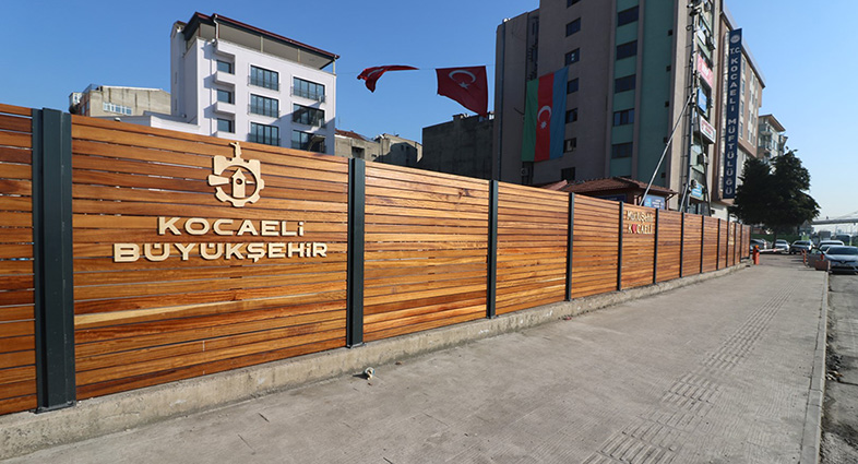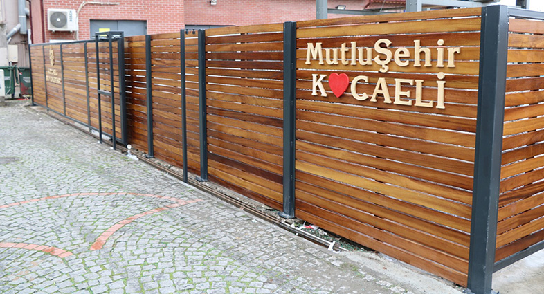Öte yandan ahşap çitlerin üzerine Park ve Bahçeler Dairesi Başkanlığı’nın kendi atölyesinde imal ettiği Kocaeli Büyükşehir Belediyesi ve ‘Mutlu Şehir Kocaeli’ logoları eklendi.