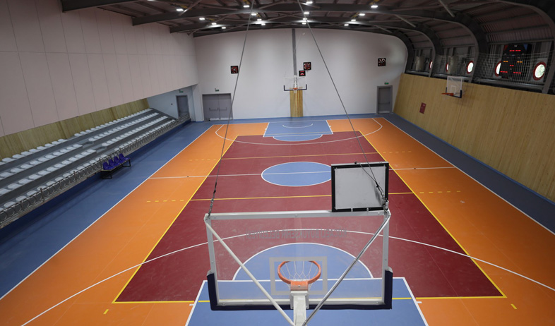 Spor salonunda 220 kişilik tribün antrenör odası, soyunma odaları, duşlar, tuvaletler ve büfe için ayrılmış kısımlar yer alıyor. Salonun yapımında 28 ton demir 366 metreküp alüminyum kompozit panel, 1840 metrekare kenetli çatı ve cephe kaplaması, 115 ton yapı çeliği, yaklaşık 450 metreküp hazır beton kullanıldı. 633 metrekare FİBA onaylı PVC zemin kaplaması uygulaması da yapıldı.
