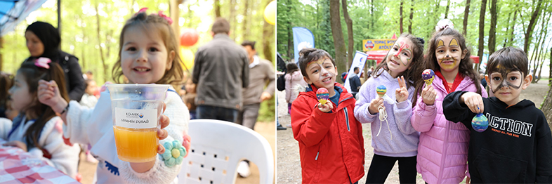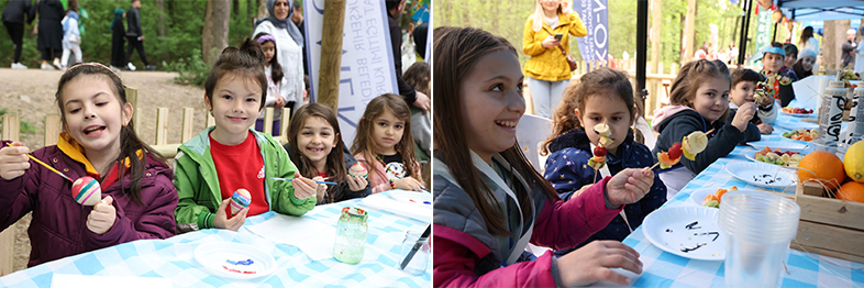Ormanya içinde kurulan vitamin durağı, meyve şöleni, bembeyaz dişler, orman lezzetleri, Ayı Yemeği tatlı tarifler, Sincabın Meşeli Mutfağı gibi atölyelerde doğadan elde edilen malzemelerle lezizi yiyecekler hazırlandı ve pratik tarifler verildi.