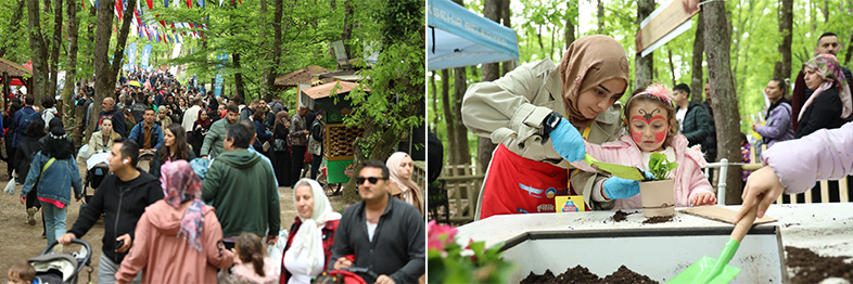 23 Nisan Pazar günü Büyükşehir’in adeta açık hava festival alanına dönüştürdüğü Ormanya’ya çocuklarıyla beraber gelen aileleri bando, palyaçolar ve çeşitli ikramlar karşıladı. Giriş kapısından Orman Kütüphanesi’ne uzanan yol boyunca yüz boyama, maket yapımı, uçurtma, botanik, ebru, tohum ekimi, dinozor şapkası, el yapımı kağıt, çanta tasarımı, atığın serüveni, çim adam gibi onlarca atölye yer aldı.