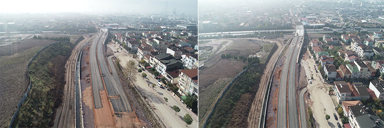 Otoyol geçiş köprüsü için 90 adet temel kazığı çakıldı. 45 adet kirişin monte edildiği otoyol geçiş köprüsü kapsamında, 1.120 metre duble yol, içme suyu, atık su ve yağmursuyu hatları, dere ıslah çalışmaları tretuvar ve parke yapımı çalışmaları yapılıyor.