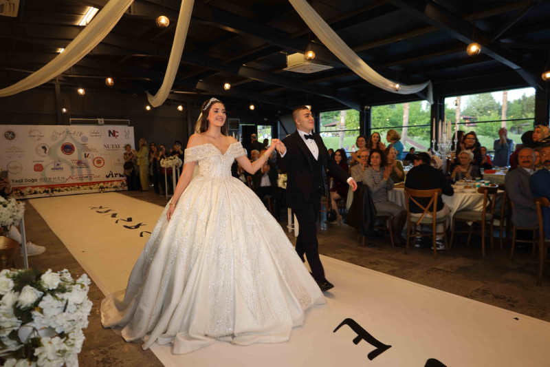 Podyumda ilk yürüyen isim anaokulu öğrencisi Gökçe Dora Işık oldu. Lila renkli kıyafetiyle podyumda yürüyen minik Gökçe, masalarda oturanlara çiçek de bıraktı. 6 yaşındaki Gökçe, izleyenler tarafından alkışlandı.