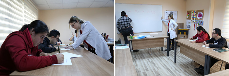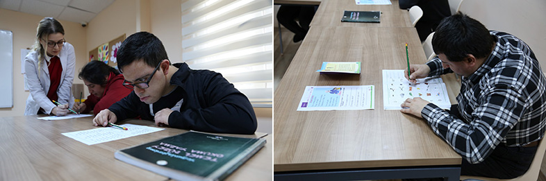 Hafif ve orta düzeyde zihinsel engelli bireylerin hizmet aldığı Cemil Meriç Engelsiz Yaşam Merkezi’nde eğitim alan öğrenciler okuma yazma öğrendi.