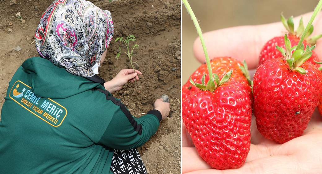 Cemil Meriç Engelsiz Yaşam Merkezi bahçecilik kursunda serada yetişen çeşitli bitki, meyve ve sebzeler ihtiyaç sahibi ailelere dağıtılacak.