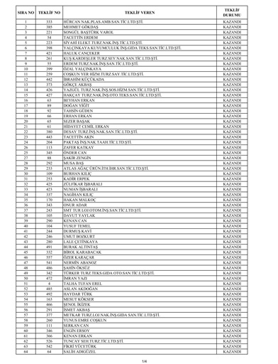İHALE ŞARTNAMESİNİN 7. MADDESİNE GÖRE KURA ÇEKİLDİ