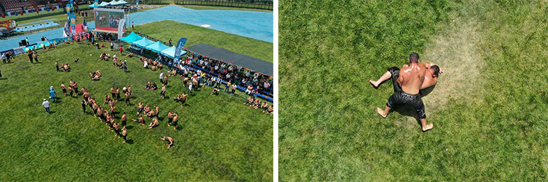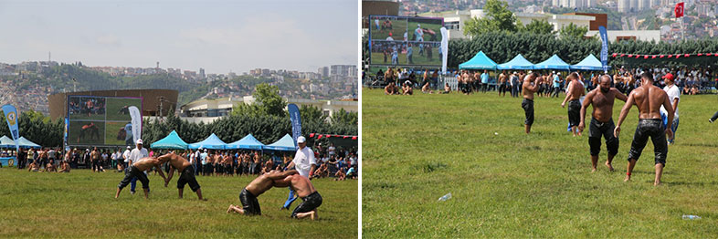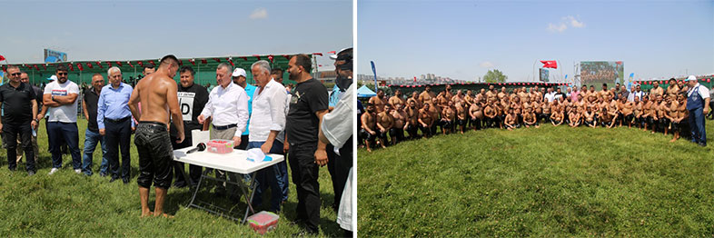 14. Altın Kemer Yağlı Güreşleri heyecanı başladı. İlk gün cuma namazı sonrası düzenlenen kortejle başpehlivanlar Cumhuriyet Bulvarında yürüyerek hem organizasyonun startını vermiş hem de Kocaeli halkını güreşleri izlemeye davet etmişti. 3 gün sürecek organizasyonda ikinci günde binin üzerinde güreşçi, bu yıl İzmit Atletizm Pistinde kol bağladı. Türk kültürünün önemli değerlerinden ata sporu yağlı güreş, Kocaeli’de yaşatılarak gelecek nesillere aktarılıyor. İkinci günde güreş alanında 14 kategoride minikten küçükorta büyük boya eleme müsabakaları yapıldı. Alana gelen Kocaeli Büyükşehir Belediye Başkanı Doç. Dr. Tahir Büyükakın katılım sağlayan vatandaşları selamladıktan sonra başpehlivanlık karşılaşmaları için kura çekimi yaptı.
