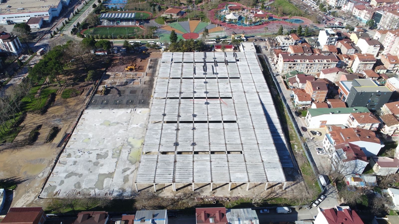 Kocaeli Büyükşehir Belediyesi Perşembe Pazarı’nın kurulacağı yeni yer için çalışmalarını sürdürüyor. Doğu Kışla Parkı’nın karşısında yapımı hızla devam eden pazar alanı şekillenmeye başladı. Proje alanında daha önce temel betonu dökülen kısımda prekast olarak adlandırılan taşıyıcı sistemlerin montajı yapılıyor. Taşıyıcı sistem pazarcıların büyük araçlarını koyacakları yer olurken alt kısım tezgâhların yer alacağı bölüm olacak.