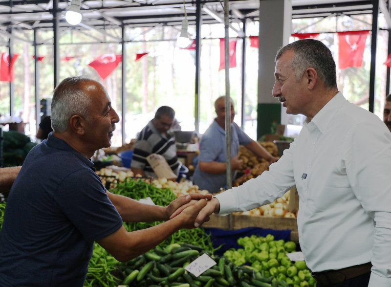 Başkan Tahir Büyükakın esnafla kahvaltı yaptıktan sonra Perşembe Pazarı'nı gezdi. Pazarcılara bol ve bereketli kazançlar dileyen Başkan Büyükakın hem esnafın hem de alışverişe gelen vatandaşların yoğun sevgisiyle karşılaştı. Tezgahları tek tek gezen Büyükakın'a esnaf sorunlarını anlatırken, Başkan çözüm için gerekenin yapılacağını söyledi. Pazarcılar özellikle tarımsal üretimin artırılması için büyük destekler veren Başkan Tahir Büyükakın'ın bu alandaki projelerinden duydukları memnuniyeti dile getirerek teşekkürlerini sundu.