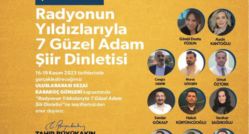 Sezai Karakoç Günleri’nde bu akşam sahneyi radyonun sevilen sesleri alacak. Radyocular Sezai Karakoç ve 7 Güzel Adam’ın şiirlerini seslendirecek