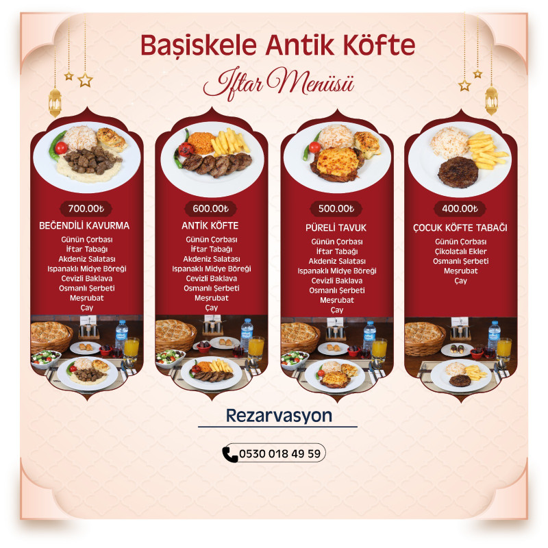 Ramazan boyunca iftar menüleri Kocaeli’nin farklı noktalarındaki Maide Kafe ve Restoran, Mahal Plus, Sekapark Antik Köfte, Darıca Antik Köfte, Darıca İskele Mahal, Balyanoz Antik Köfte, Gebze Millet Bahçesi Antik Köfte Ekspres, Çayırova Millet Bahçesi Mahal, Değirmendere Antik Köfte Ekspres ve franchise olarak hizmetlerini sürdüren Kartepe Antik Köfte ve Başiskele Antik Köfte şubelerinde misafirlere sunulacak.
