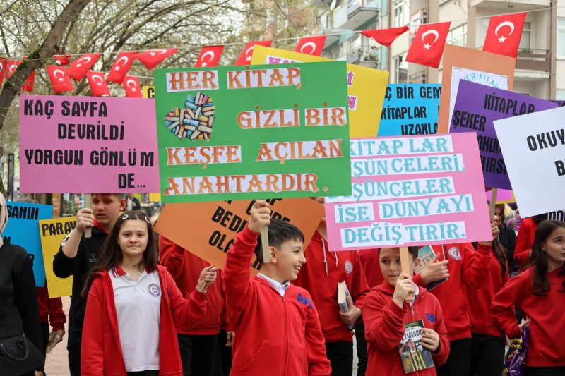 Etkinlik, Kütüphanem Kocaeli’nin yeni maskotu “Koca Bilge” eşliğinde gerçekleştirilen kortej ile başladı. Çocuklar, kitap okumanın önemini anlatan pankartlar taşıyarak keyifli anlar yaşadı. Mini kortejin ardından çocuklar, Cumhuriyet Bulvarı’nı süsleyen dev ağaçların etrafında toplanarak kitap okudu. Doğayla iç içe gerçekleşen bu anlar, etkinliğin en sakin ve anlamlı bölümlerinden biri oldu.