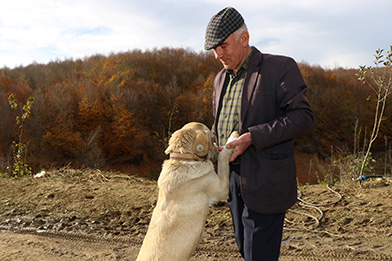 Emekli zabıta komiseri Esat Turhan da köy alanının dışında kalan bir yerde temin ettiği arazinin güvenliği için Sokak Hayvanları Geçici Bakımevi ve Rehabilitasyon Merkezi’nden bir köpek sahiplendi. Dört yıldır baktığı köpeğinden çok memnun olan Turhan; “Köpeğim benim torunum gibi oldu. Ona çok alıştım. Arazide devriye atmaya başladı. Köpeği sahiplendikten sonra o köpeğe sevgi ve şefkat göstermezsen köpek zaten durmaz, kaçar. Çocuklarım geldiği zaman bizden fazla onunla ilgileniyorlar. Sevgiden mahrum olmadığı için köpeğimiz de bize çok sadık. Bize bu hizmeti sunduğu için Kocaeli Büyükşehir Belediyesi’ne teşekkür ediyorum” ifadesini kullandı.
