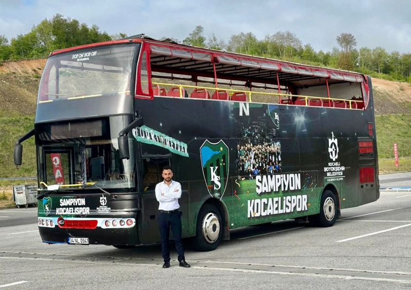 Kocaeli Büyükşehir Belediyesi, Süper Lig’e yükselen Kocaelispor’un bu akşam İzmit Kent Meydanı’nda gerçekleştireceği şampiyonluk kutlaması için üstü açık otobüs giydirdi. Futbolcular, şampiyonluk coşkusunu otobüs üzerinde taraftarla birlikte yaşayacak.