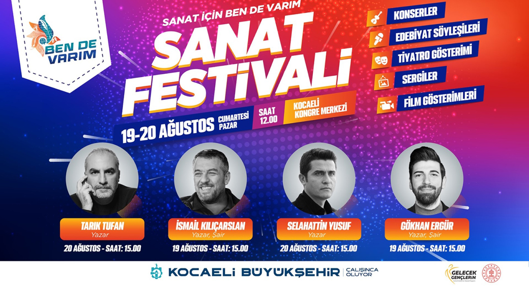 Kocaeli Büyükşehir Belediyesi tarafından 19-20 Ağustos tarihlerinde düzenlenecek Sanat için Ben De Varım Festivali için hazırlıklar sürüyor. Kocaeli Kongre Merkezi’nde gerçekleştirilecek festivalde eğitim süresince özel gereksinimli öğrencilerin ürettiği görsel ve geleneksel sanat eserleri sergilenecek. Üretilen edebi eserler ise bir seçki kitap olarak yayınlanacak. Ayrıca bir öğrencinin yazdığı ve rap tarzında bestelenerek klibi çekilen bir şiirin festivalde gösterimi yapılacak.