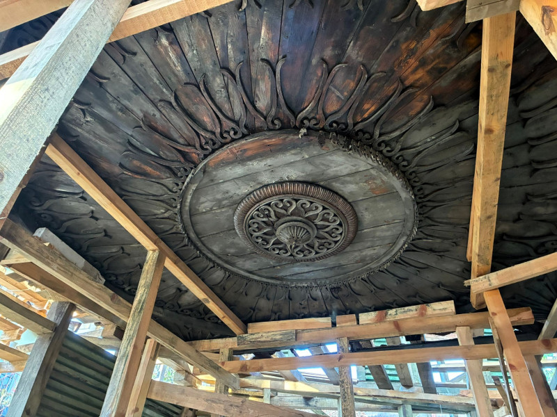 Kocaeli Büyükşehir Belediyesi, Gölcük ilçesine bağlı Saraylı Köyü Meydanı’ndaki tescilli yapıda yürüttüğü yenileme çalışmalarına devam ediyor. Ekipler, çalışma kapsamında yapının en estetik bölümü olan el işçiliği ahşap göbekli tavanı koruma altına aldı.