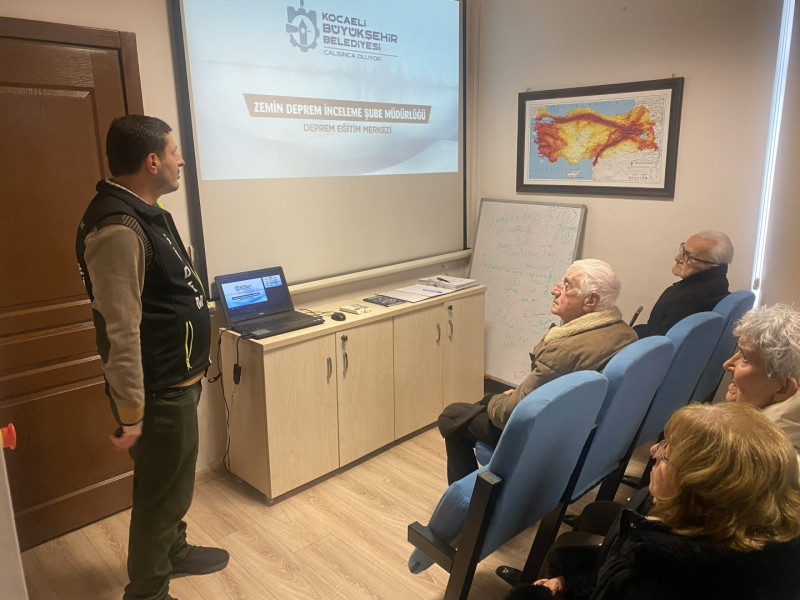 Kocaeli Büyükşehir Belediyesi, 65 yaş üzeri vatandaşlara yönelik bilinçlendirme çalışmalarına bir yenisini daha ekledi. Bu kapsamda Saygınlar Kulübü üyeleri, Sismolojik İzleme ve Deprem Eğitim Merkezi’nde simülasyonlu deprem eğitimi aldı.