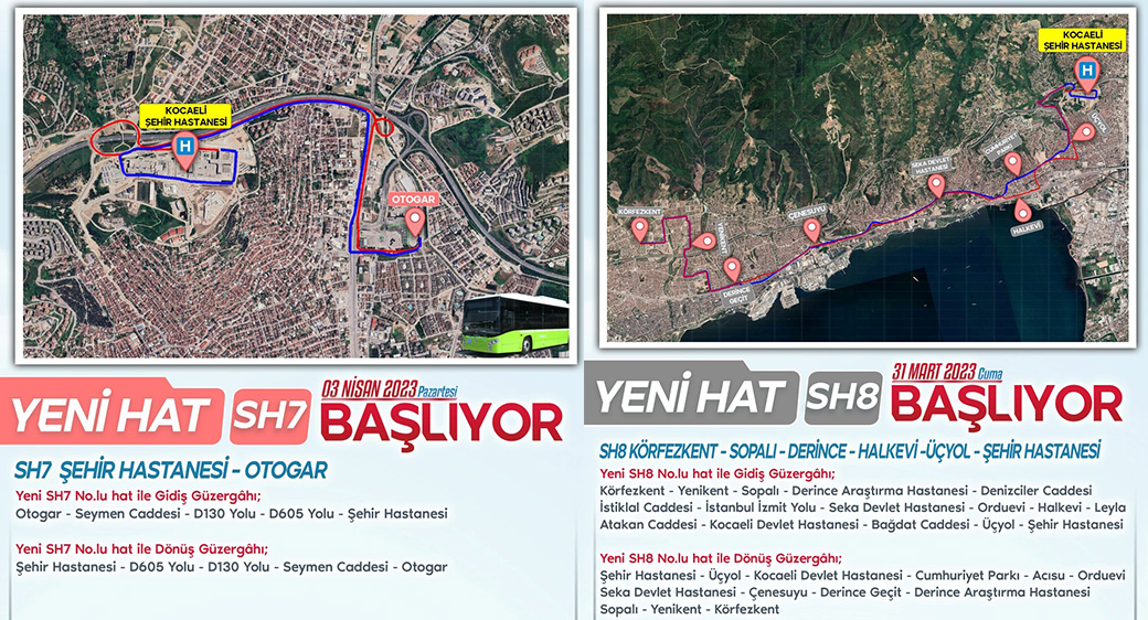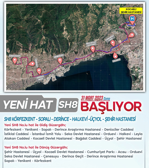 Körfezkent – Yenikent - Sopalı- Derince bölgesindeki vatandaşların Şehir Hastanesi erişimin sağlanması için SH8 hattı kuruldu. Ayrıca Sopalı Araştırma Hastanesi – Seka Devlet Hastanesi – Kocaeli Devlet Hastanesi’nden SH8 hattı ile Şehir Hastanesine direkt ulaşım sağlanacak.