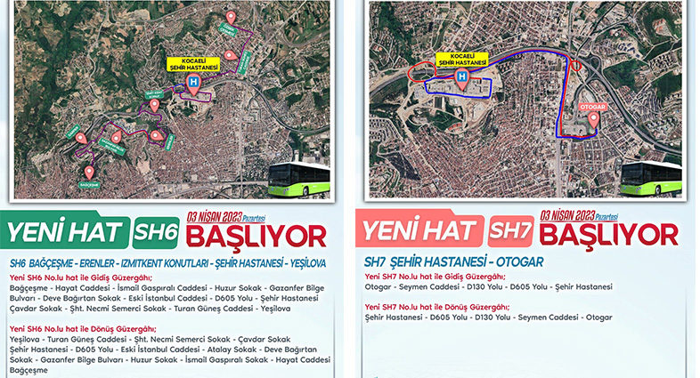 İzmit Orhan Mahallesi-Turgut Mah.- Erenler Mah. - Cedit Mah. - 28 Haziran Mahallerinden Şehir Hastanesi ve Yeşilova bölgesine erişimin sağlanması için hizmet verilecek. Ayrıca SH6 Hattı ile 28 Haziran, Cedit, Erenler Mahallelerinde ikamet eden öğrencilerin, Orhan Mahallesinde bulunan Tevfik Sena Arda Lisesine tek vasıta ile toplu ulaşım hizmeti sağlanacak. SH6 Hat araçları ile 43-44-51-53 no.lu Hat araçları arasında ücretsiz aktarmalı toplu taşıma hizmeti verilecek.
