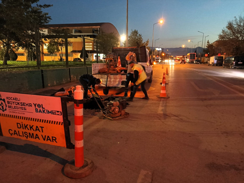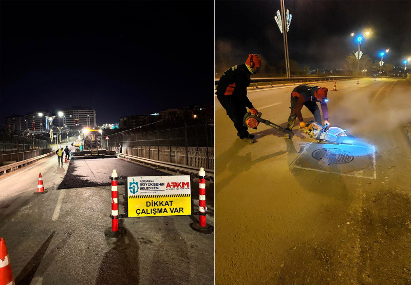 Kocaeli Büyükşehir Belediyesi, yoğun bir tempo ile kentin çeşitli noktalarında çalışmalarını kesintisiz sürdürüyor. Bu kapsamda Büyükşehir’e bağlı A Takımı ile Yol Bakım Timleri, yol yapım ve onarım işlerini trafik akışını olumsuz etkilememek için gece saatlerinde büyük bir özveriyle gerçekleştiriyor.