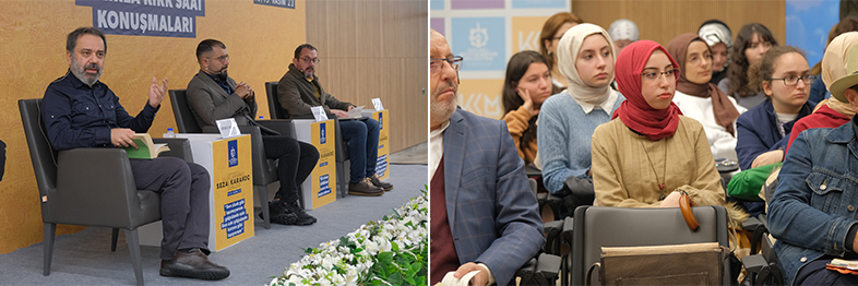 Kocaeli Kongre Merkezi’nin Karamürsel Alp Salonu’nda gerçekleştirilen söyleşiye özellikle gençler büyük ilgi gösterdi. Söyleşide ilk konuşmayı yazar Ahmet Murat yaptı. Murat konuşmasına Sezai Karakoç’un Hızırla 40 Saat şiirinden bölümler okuyarak başladı. Hızır imgesinin Kuran’ı Kerimde geçmediğini söyleyen Ahmet Murat, “Ama biz hadislerden Hızır’ın olduğunu anlıyoruz. Bunun üzerine bina edilmiş olan Hızır imgesi İslam kültüründen folklore ve atasözlerine kadar sinmiştir. Bu simge batıda da karşımıza çıkıyor” dedi.
