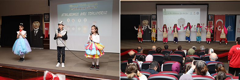 Programda konuşan Çevre Koruma ve Kontrol Dairesi Başkanı Mesut Önem, “Bugün çevremizi korumak ve sürdürülebilir gelecek inşa etmek için israfı önlemeyi, atık azaltmayı teşvik eden bir gündür. Sayın Emine Erdoğan’ın öncülüğünde proje olarak başlatılan sıfır atık yaklaşımı, bugün adı dünyada duyulan uluslararası çapta bir proje uygulamasına dönüşmüş durumdadır. Sevgili çocuklar, Kocaeli Büyükşehir Belediyesi olarak, gelecek nesiller için daha temiz ve yaşanabilir bir dünya bırakmak için önemli adımlar atıyoruz. Misafiri olduğumuz yeryüzünü bize emanet edildiği şekliyle bizden sonrakilere bırakmak, hepimizin temel sorumluluğudur. Biliyorsunuz ki; doğal kaynaklarımız hızla tükeniyor, doğamız tahrip oluyor ve biz insanların yaşam kalitesi maalesef her geçen gün daha da düşüyor. Bizde belediyeler olarak tertemiz bir gelecek için çalışmalarımızı sürdürmekteyiz. Yaptığımız tüm çalışmalarda; atık oluşumunu önlemeyi, kaynağında ayrıştırmayı, geri dönüştürmeyi dolayısıyla daha yaşanabilir bir çevreyi, daha güçlü bir ekonomiyi hedefliyoruz. Bunu yapmak için de sizlerin desteğine ihtiyacımız var” dedi.