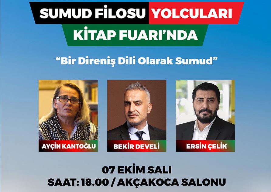 İsrail zulmü altındaki Gazze’ye insani yardım ulaştırmak için yola çıkan Küresel Sumud Filosu’nda yer alan Türk aktivistlerden Bekir Develi, Ayçin Kantoğlu ve Ersin Çelik Uluslararası 15. Kocaeli Kitap Fuarı’na konuk olacak. Bir insanlık dramını en net şekilde ortaya koyarak, gönüllerde taht kuran Türk aktivistler, 7 Ekim Salı günü (yarın) Kocaeli Kitap Fuarı’nın gerçekleştirildiği Kocaeli Kongre Merkezi Akçakoca Salonu’nda söyleşi gerçekleştirecek. “Bir Direniş Dili Olarak Sumud” başlıklı söyleşi saat 18.00’de başlayacak.